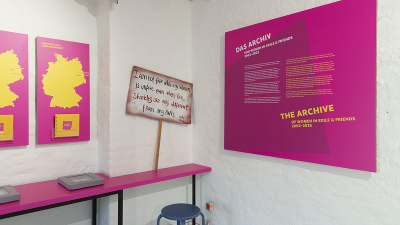 Die Ausstellung „Wege des Widerstandes“ von Women in Exile e.V. in Kooperation mit dem FHXB Friedrichshain-Kreuzberg Museum beleuchtet die Archivpraktiken und das politische Engagement von Women in Exile und ihren Unterstützer*innen in Berlin, Brandenburg und darüber hinaus. Im Mittelpunkt steht die Arbeit und Vernetzung der Organisation im Kontext europäischer Migrations- und Asylpolitiken.